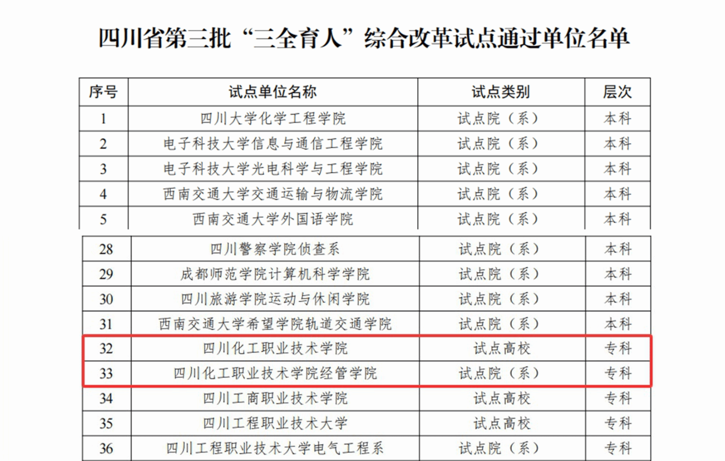 办公室公布了四川省第三批“三全育人”综合改革试点总结评审结果,学校上榜四川省“三全育人”综合改革试点高校,经济管理学院上榜四川省“三全育人”综合改革试点院(系),标志着我校在构建全员、全过程、全方位育人格局方面取得了阶段性重要进展。