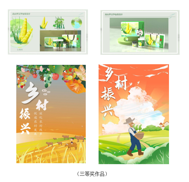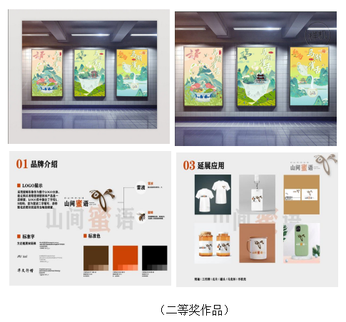 征集作品期间,同学们踊跃参与,纷纷发挥个人技能进行创作,截止6月1日,共征集作品36份。同学们以乡村振兴、蜂蜜、茶叶等为主题,进行宣传海报、产品包装、品牌形象设计,每一件作品都凝聚了同学们的汗水与智慧,不仅具有美感的创意表达,更体现了同学们对数字助农的关注与思考。评委老师们根据作品创意点、整体视觉效果、色彩搭配能力等方面进行综合评审,最终,数媒2231班陈圳荣获一等奖;数媒2231班肖传海、数媒2231班夏秋萌荣获二等奖;数媒2232班王懿鑫、数媒2231班冯胡琪、数媒2231班吴金华荣获三等奖。