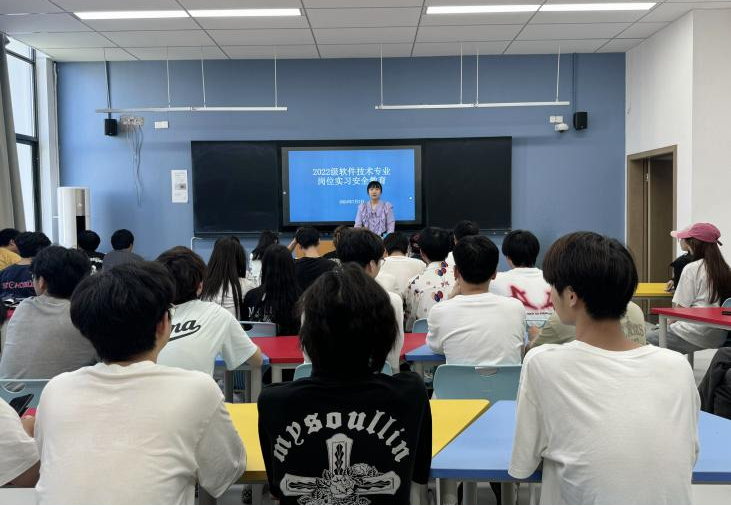 软件技术专业教师孔娅妮围绕实习期间可能遇到的安全问题进行了详细讲解,她要求同学们必须严格遵守实习单位的安全管理制度和操作规程,确保实习工作的安全与顺利。她还就实习期间的纪律要求、任务安排以及预期目标进行了讲解,为同学们明确了实习的方向和目标。